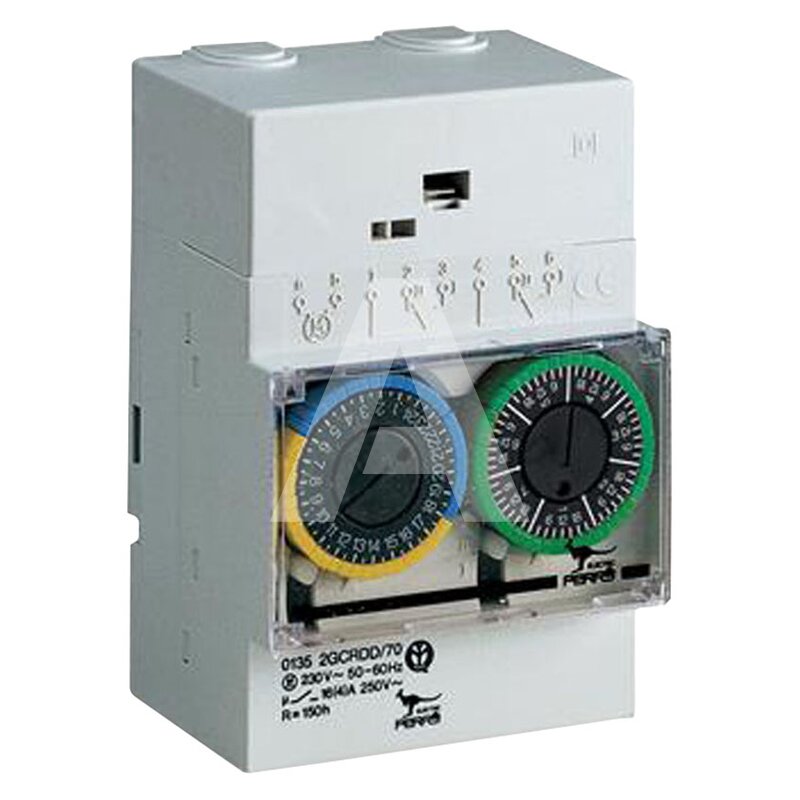 Zegar sterujący, elektromechaniczny dzienny/tygodniowy z rezerwą zasilania, 2 kanały, 4 DIN, 1IO 0136