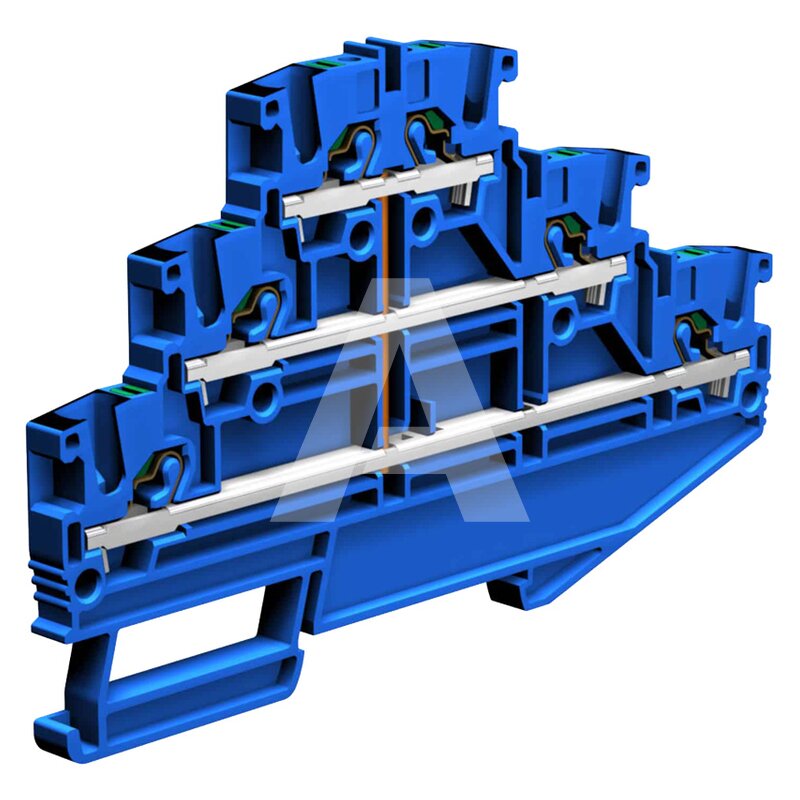Złącze push-in 2,5mm2, 3-piętrowe połączone wewnętrznie, niebieskie, EFT.2/CI/BL, model EFT210BL.